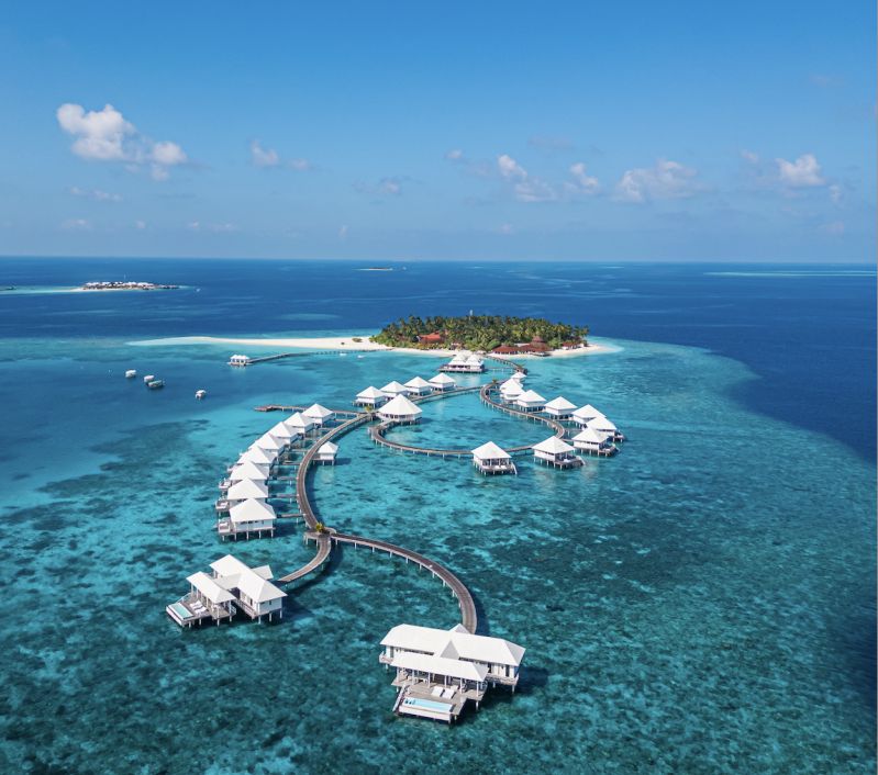 Located in the sought-after South Ari Atoll, the resort is reached by a breathtaking 25-minute seaplane flight from Malé International Airport, offering unforgettable aerial views of the Indian Ocean. The island features elegant Beach Bungalows, Beach Junior Suites, Water Villas, and exclusive Jacuzzi Water Villas, all designed to blend seamlessly with nature while providing maximum comfort and privacy.